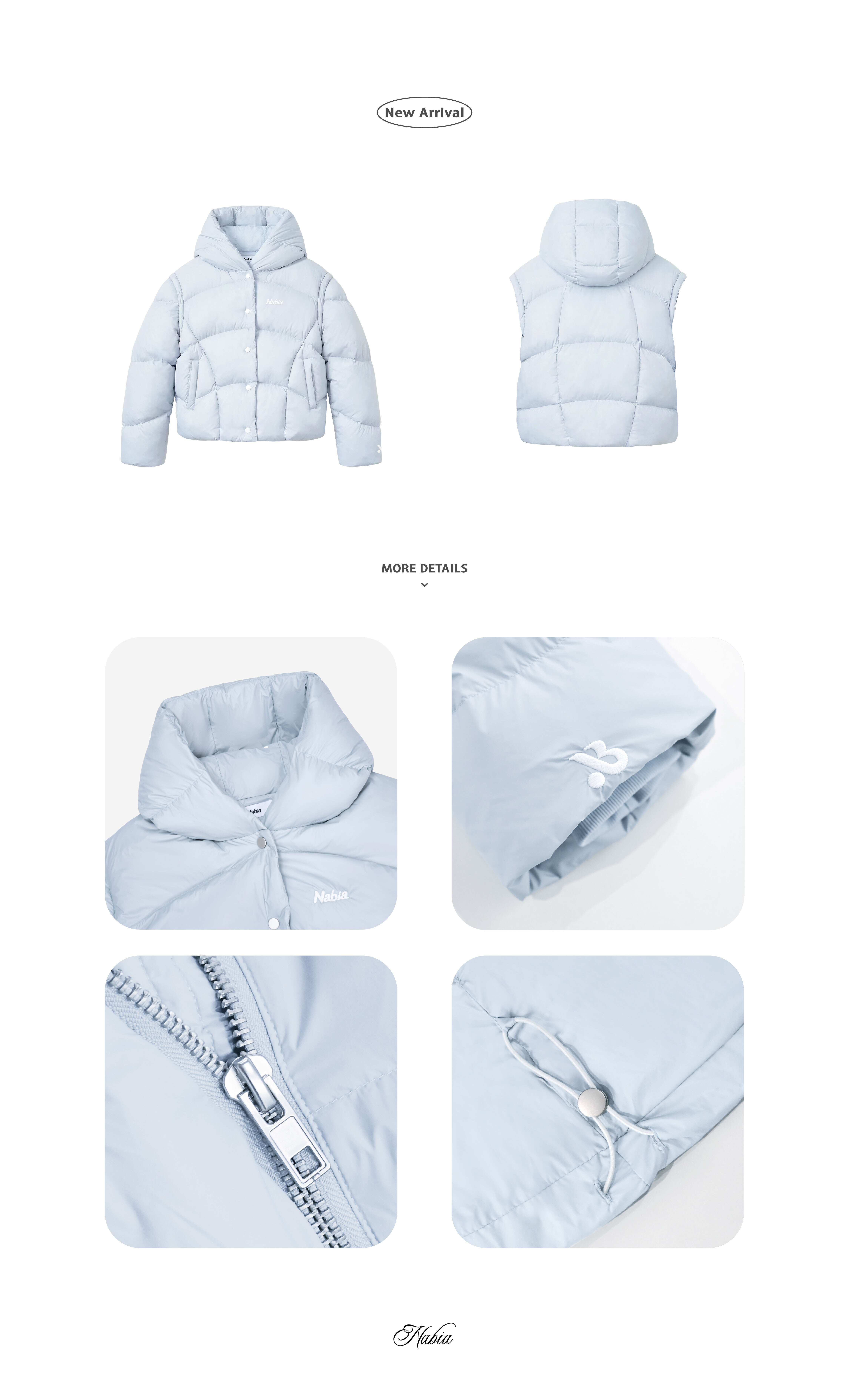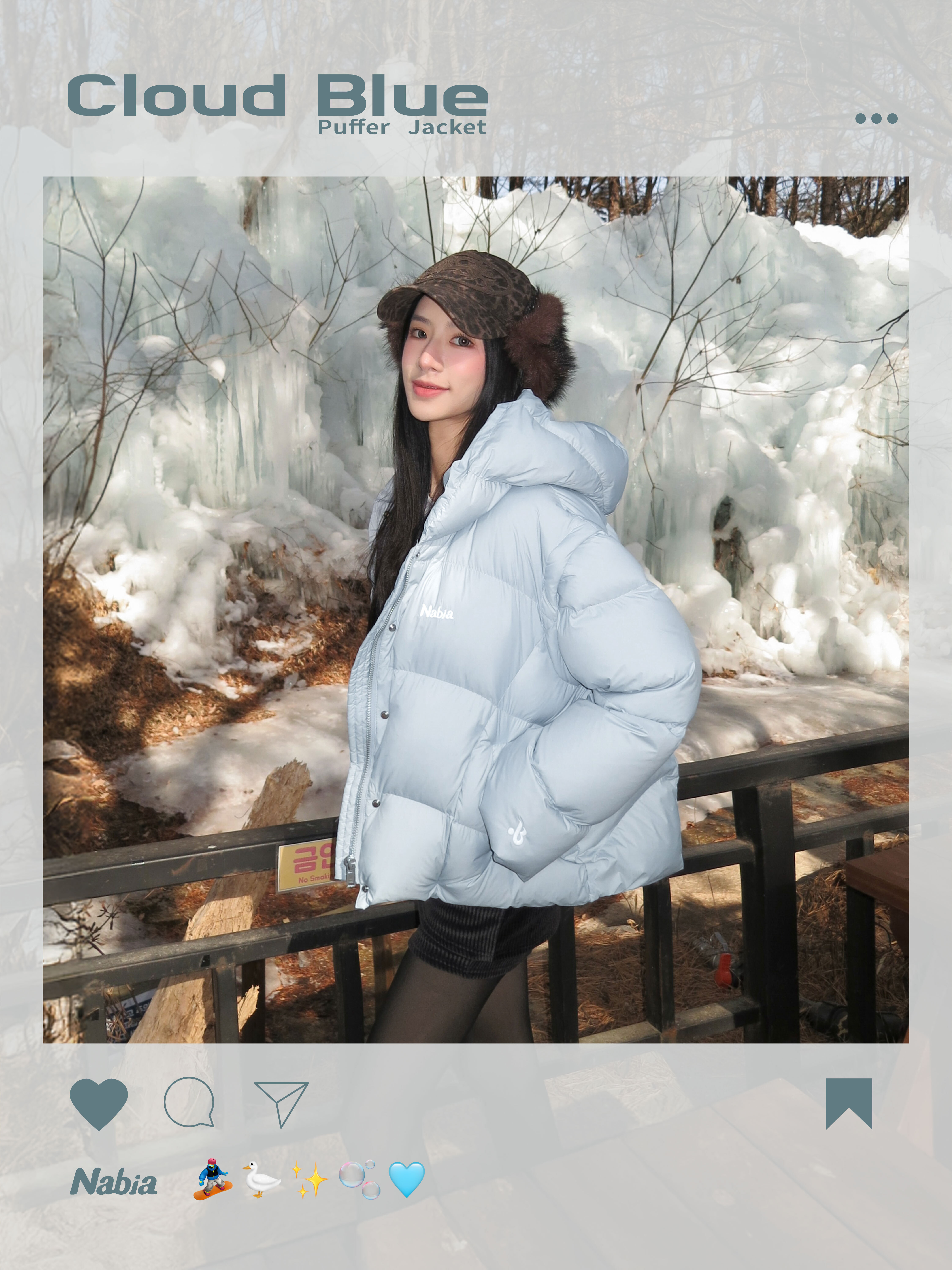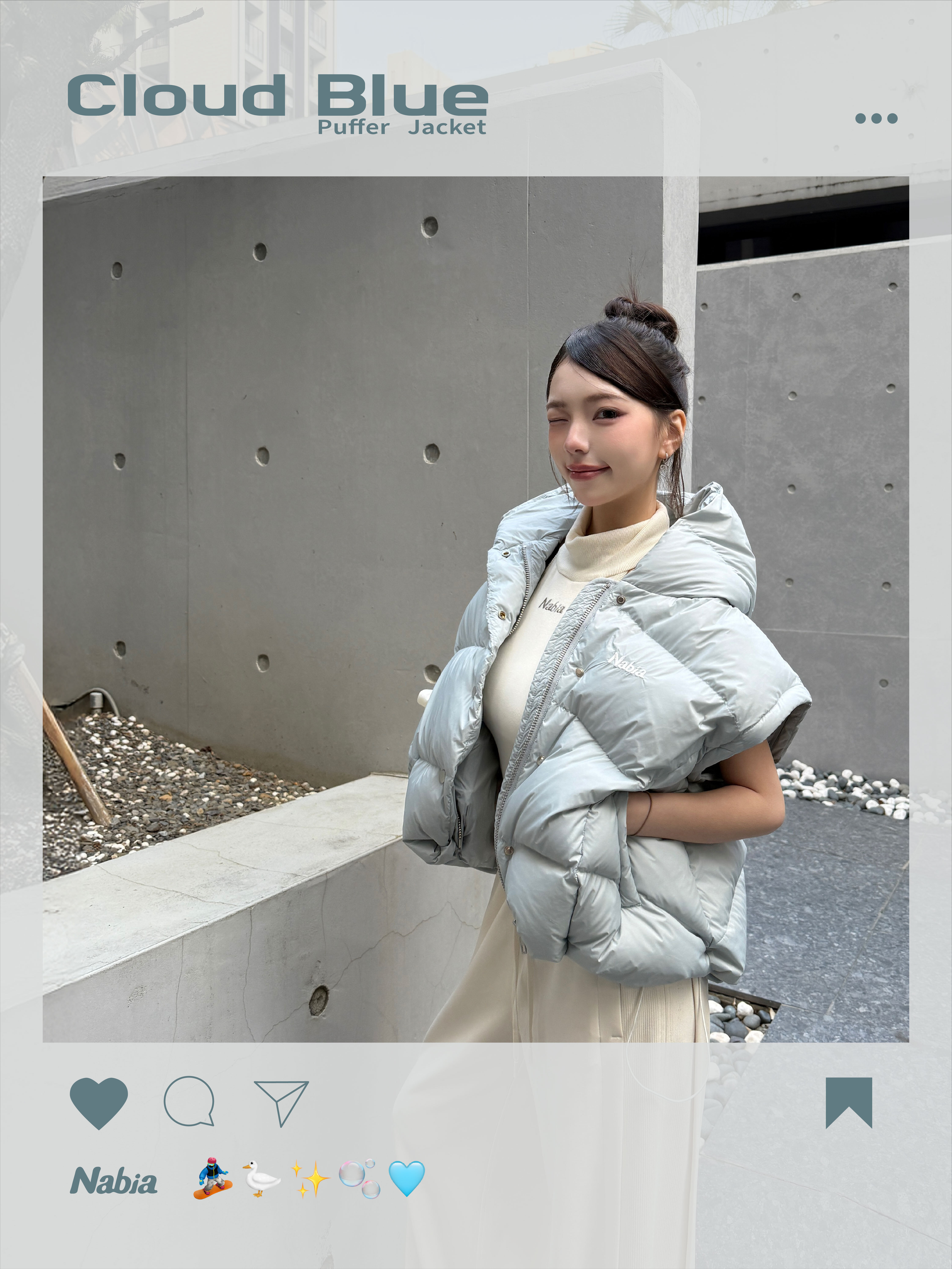 立體羽絨連帽外套 - 冰川藍