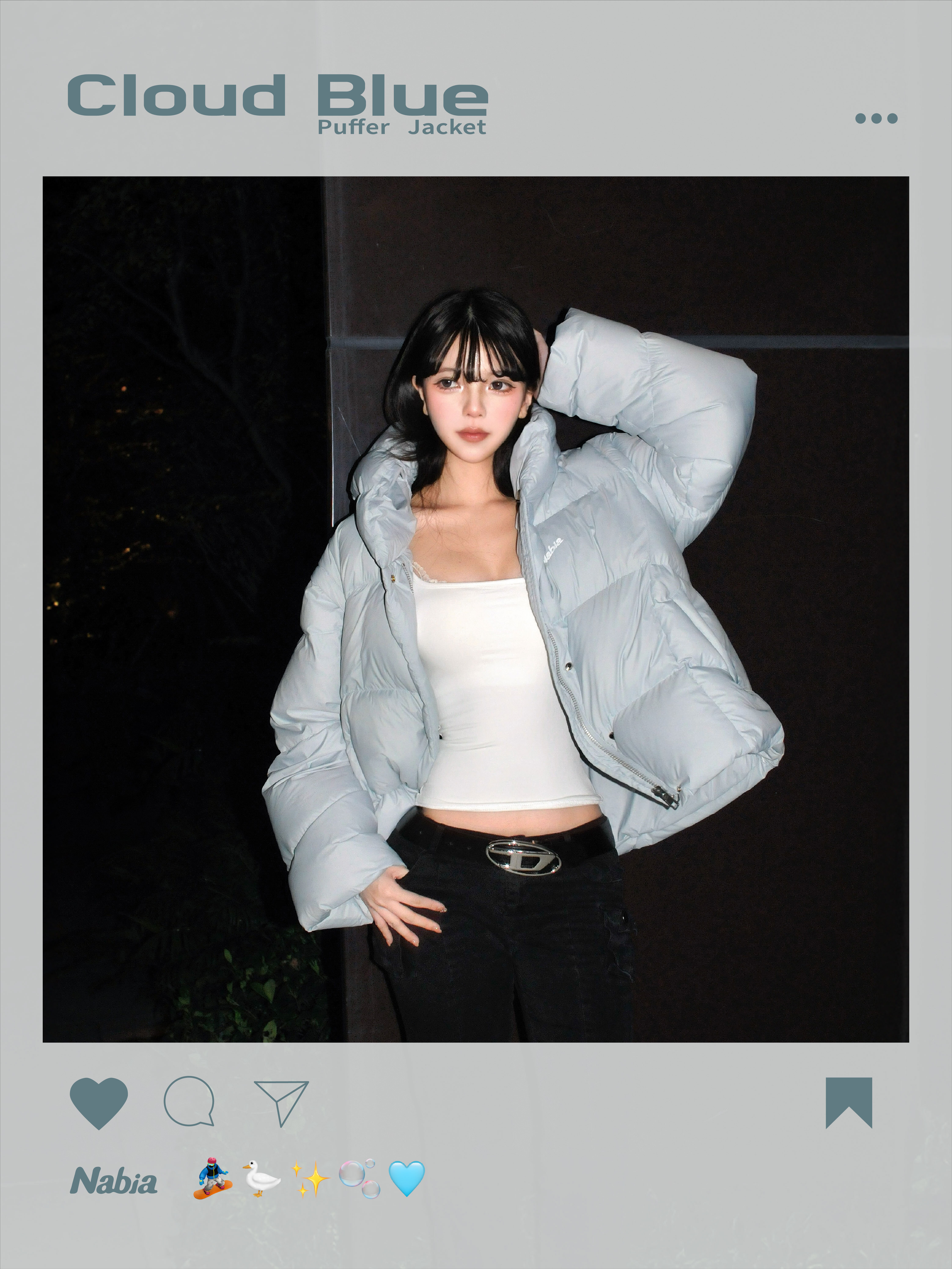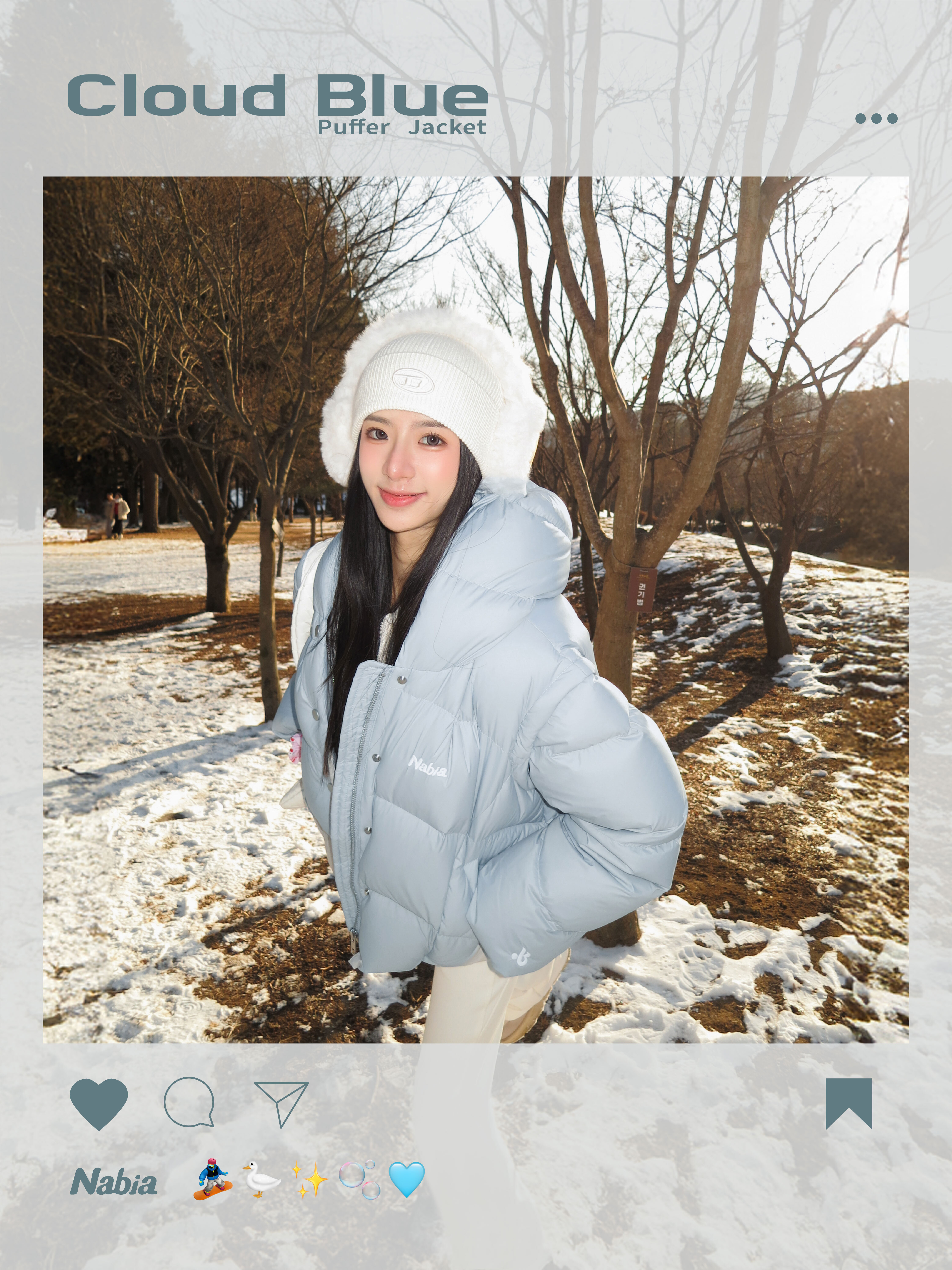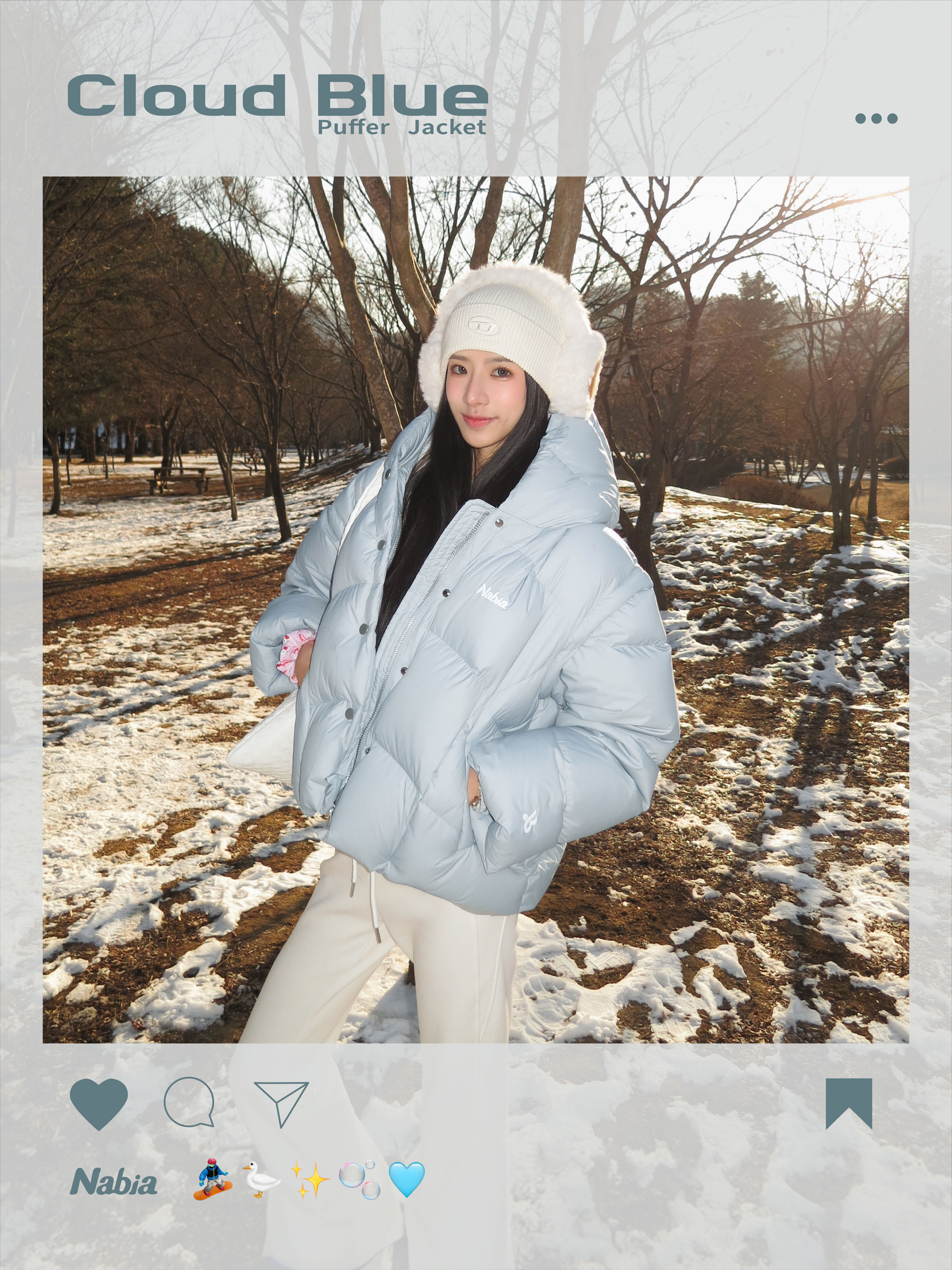 立體羽絨連帽外套 - 冰川藍