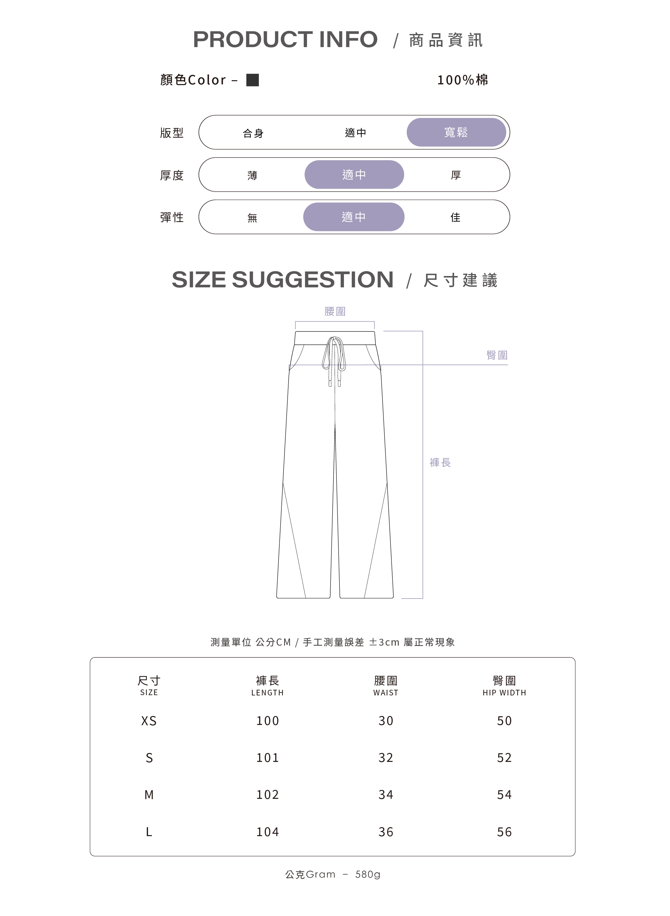* 此面料可能因摩擦而轉移顏色 / 避免和淺色衣物接觸
