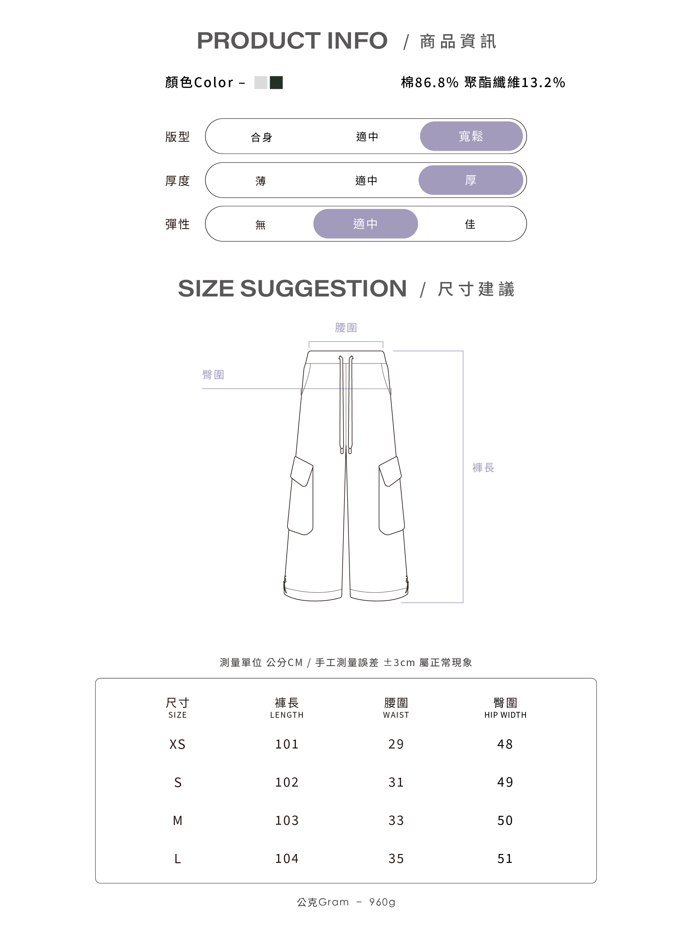 * 此面料可能因摩擦而轉移顏色 / 避免和淺色衣物接觸