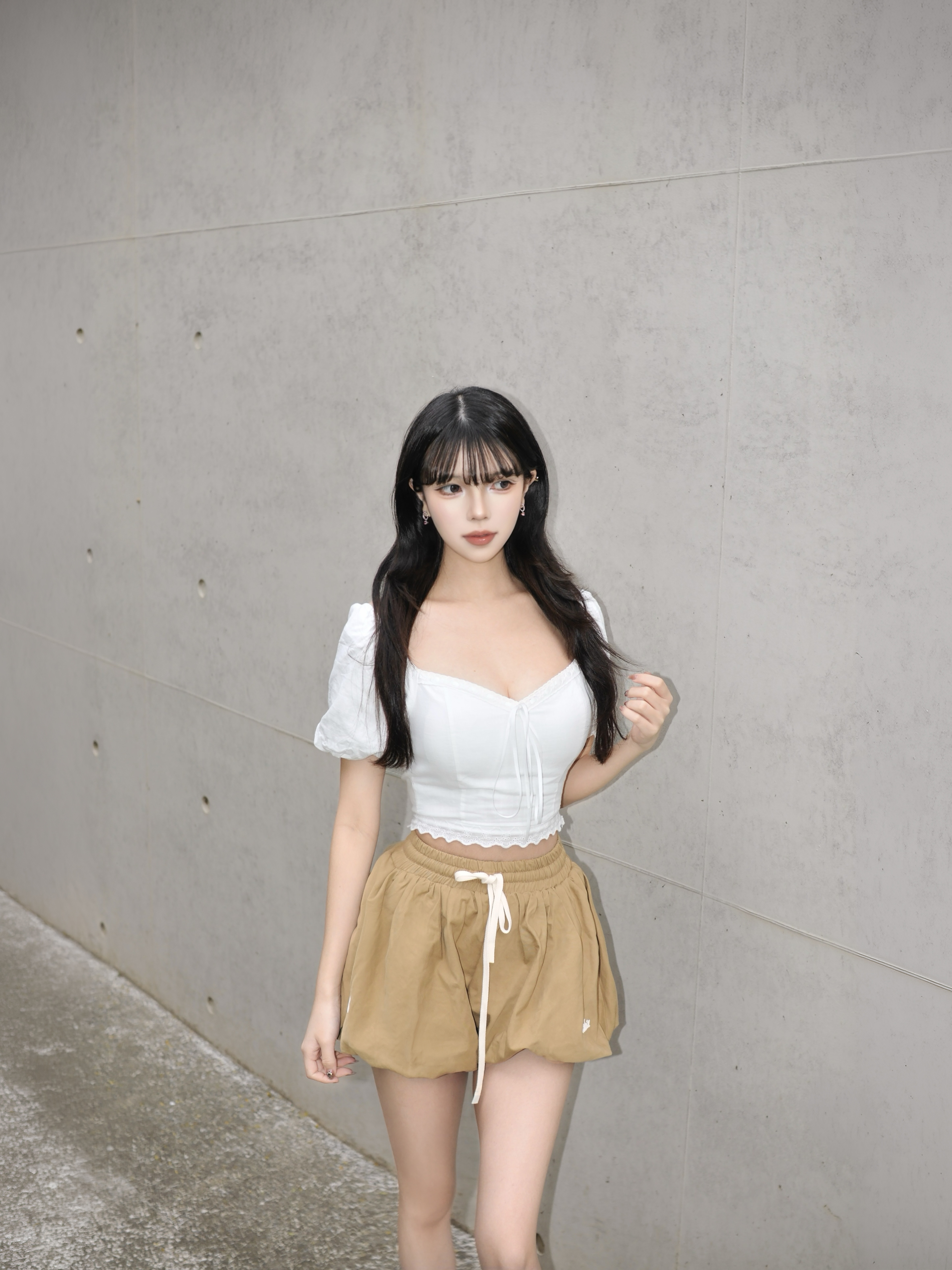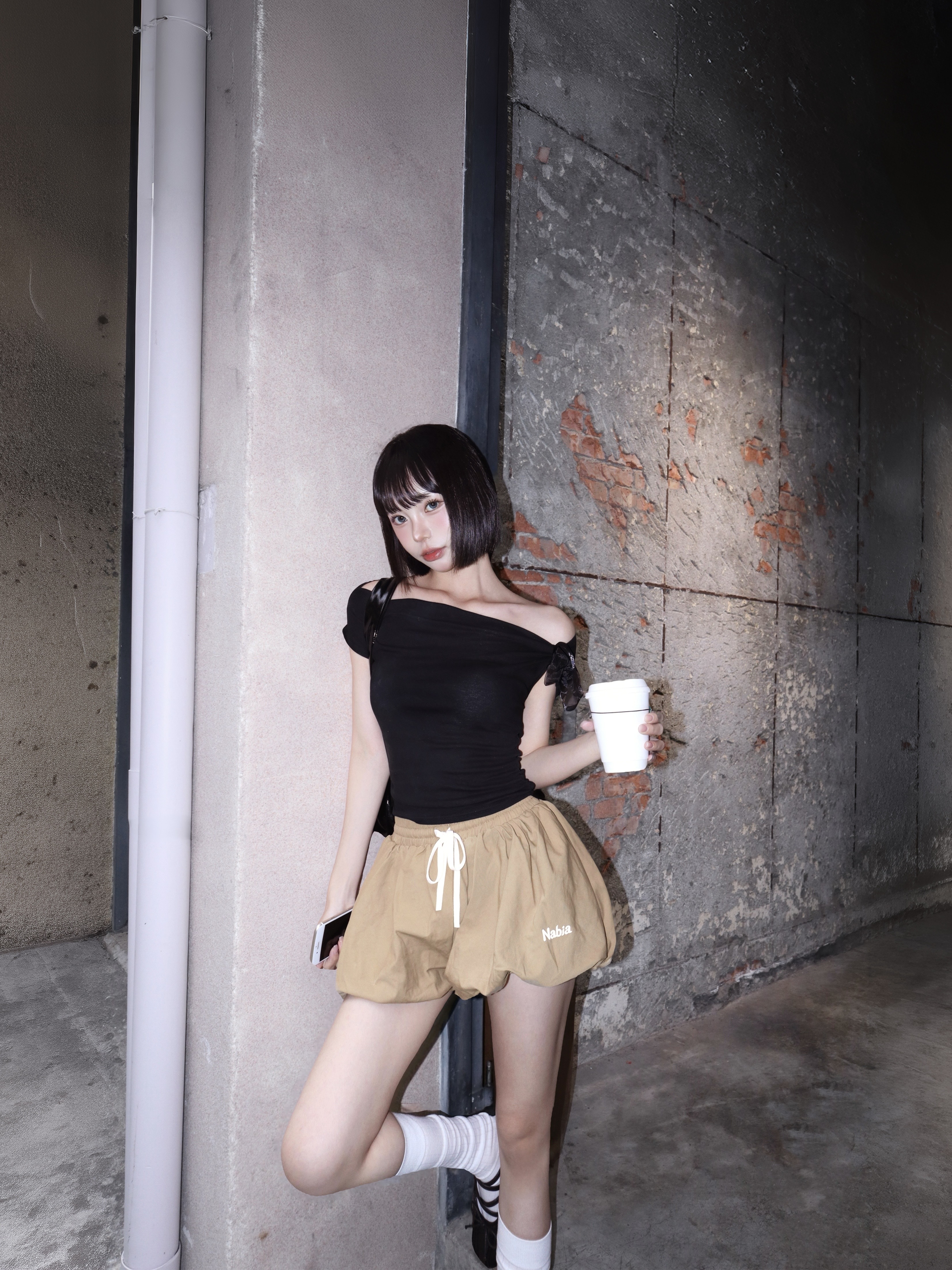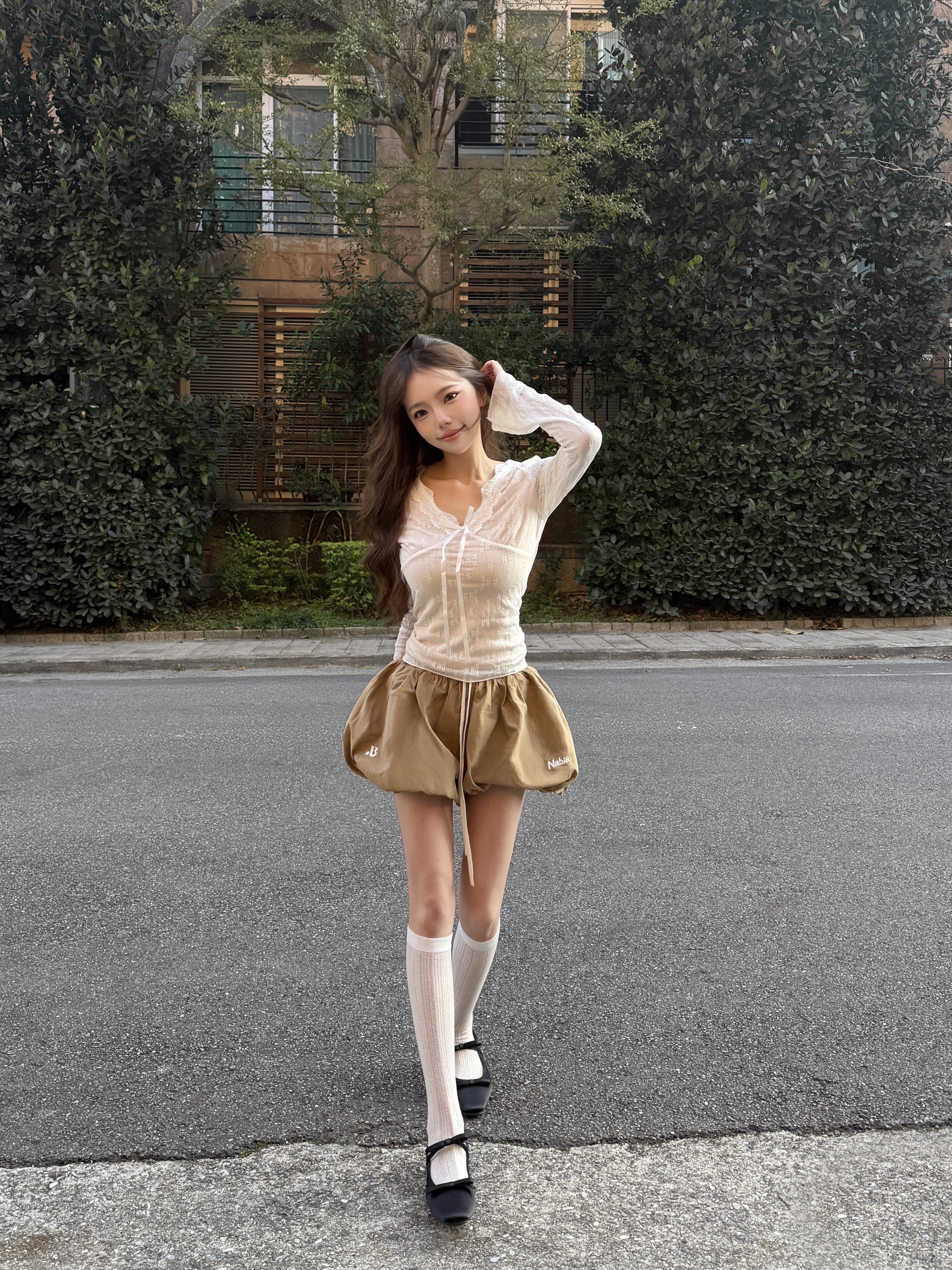 澎澎立體修身花苞褲裙 - 焦糖牛奶