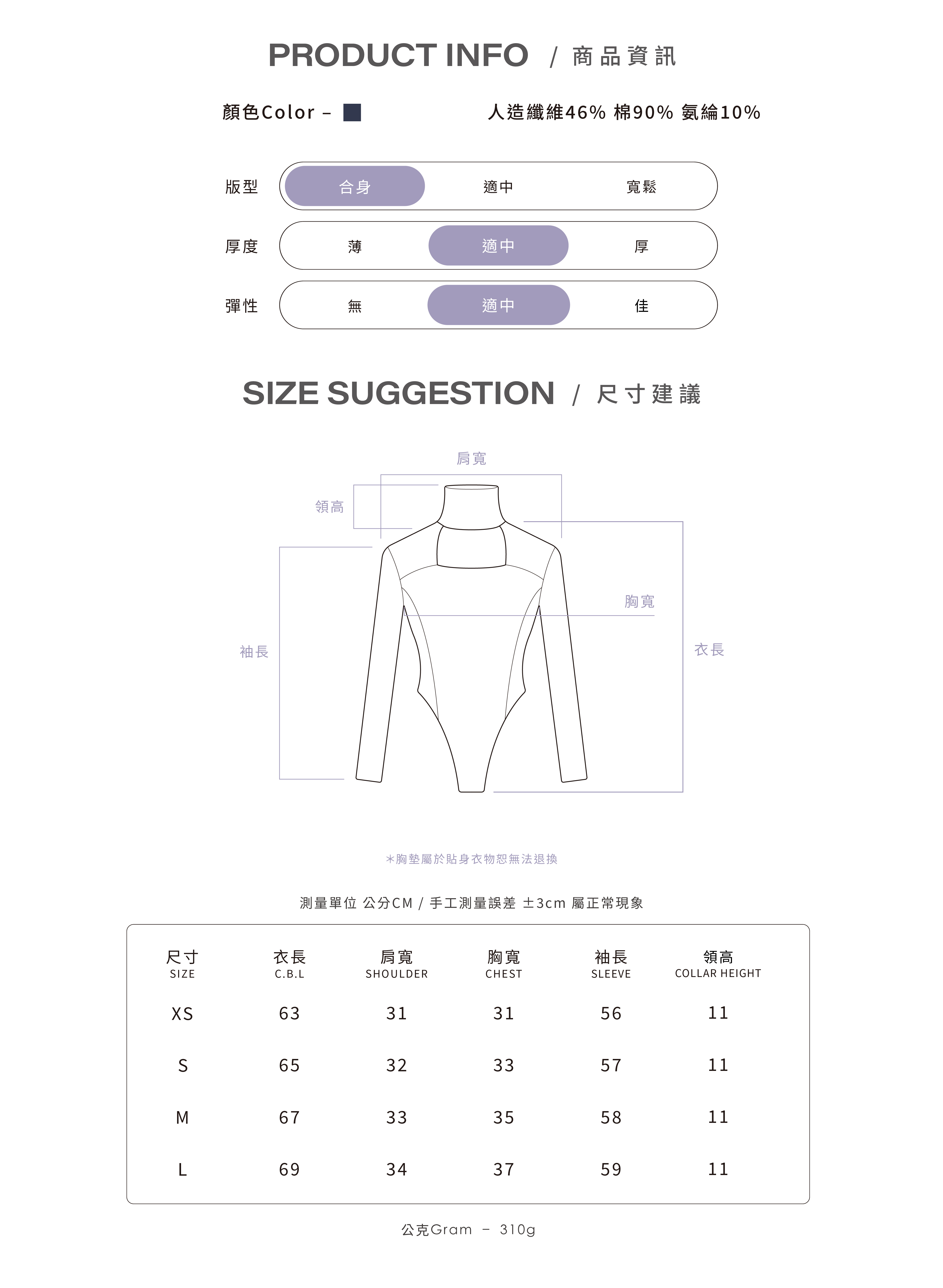 * 此面料可能因摩擦而轉移顏色 / 避免和淺色衣物接觸