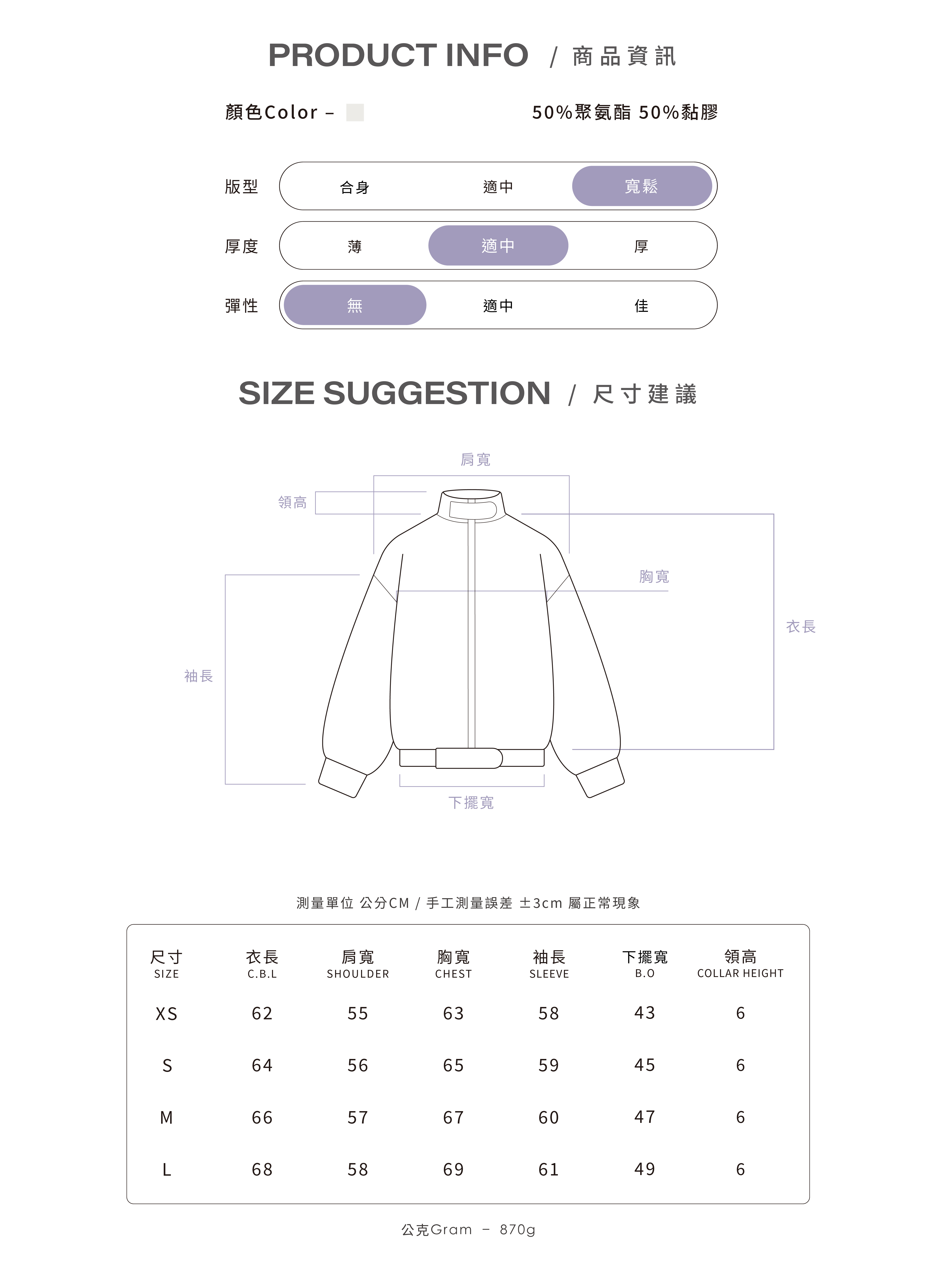 * 此面料可能因摩擦而被染色 / 避免和深色衣物接觸