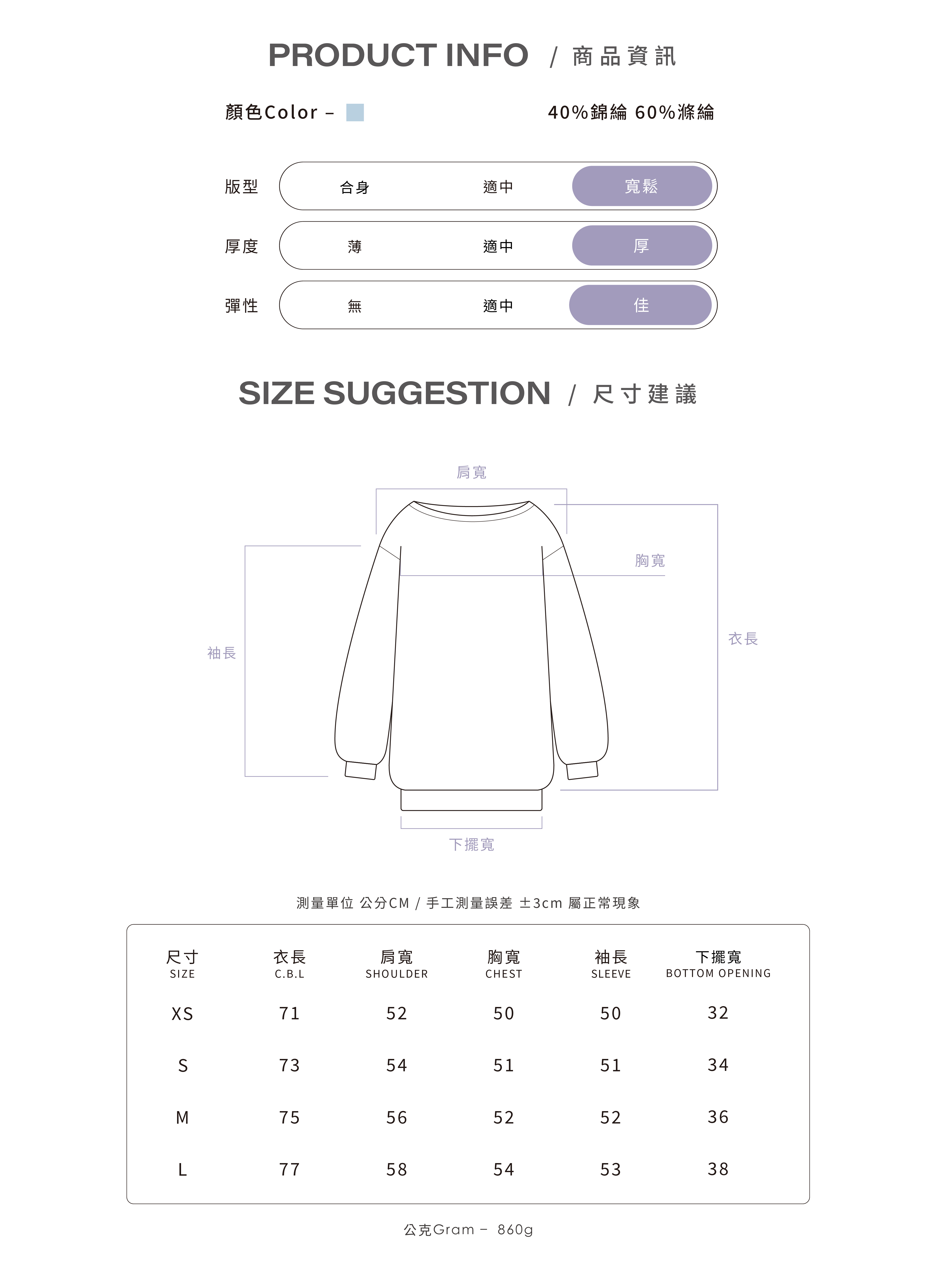 * 此面料可能因摩擦而轉移顏色 / 避免和淺色衣物接觸