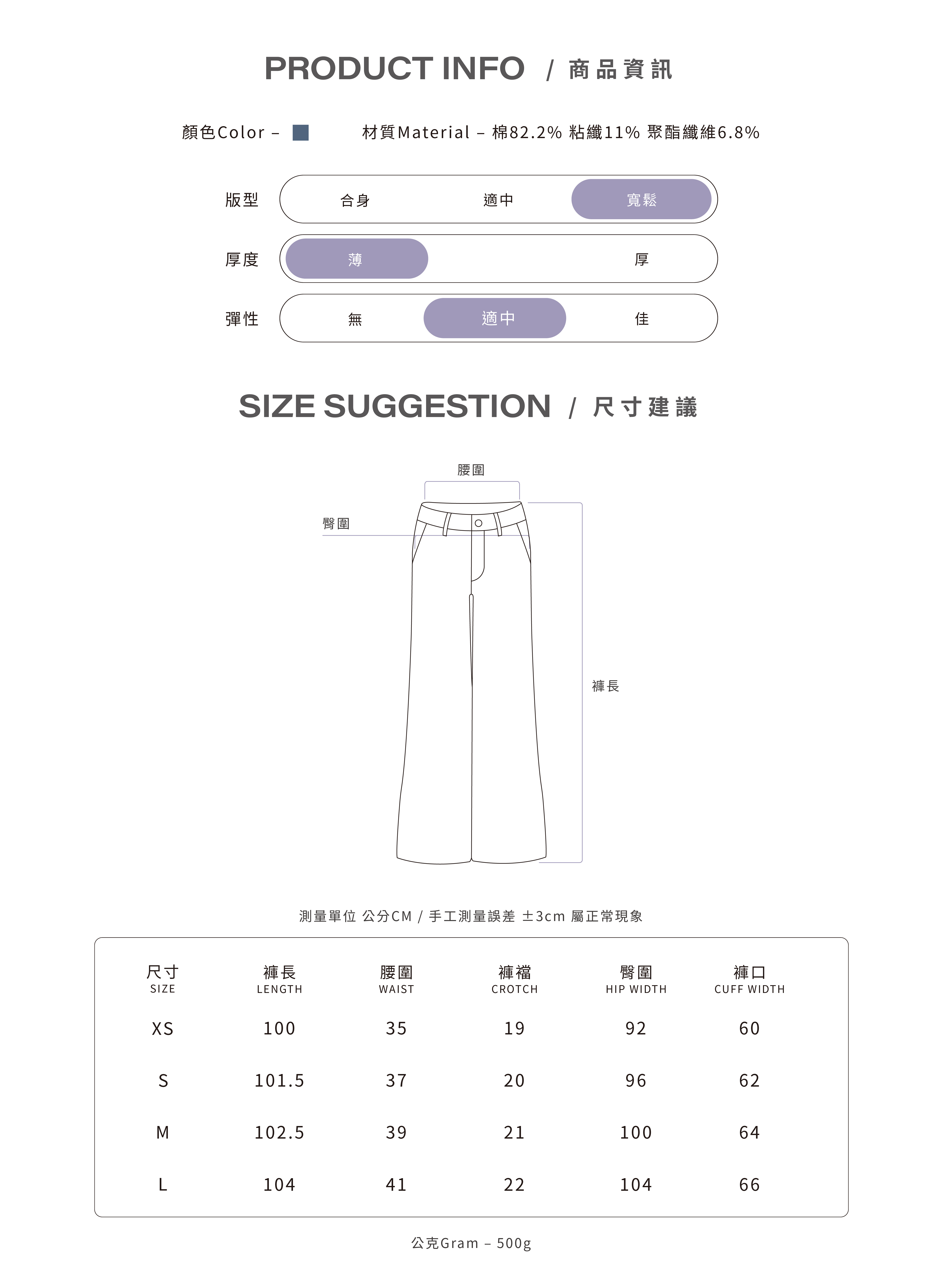* 此面料可能因摩擦而轉移顏色 / 避免和淺色衣物接觸