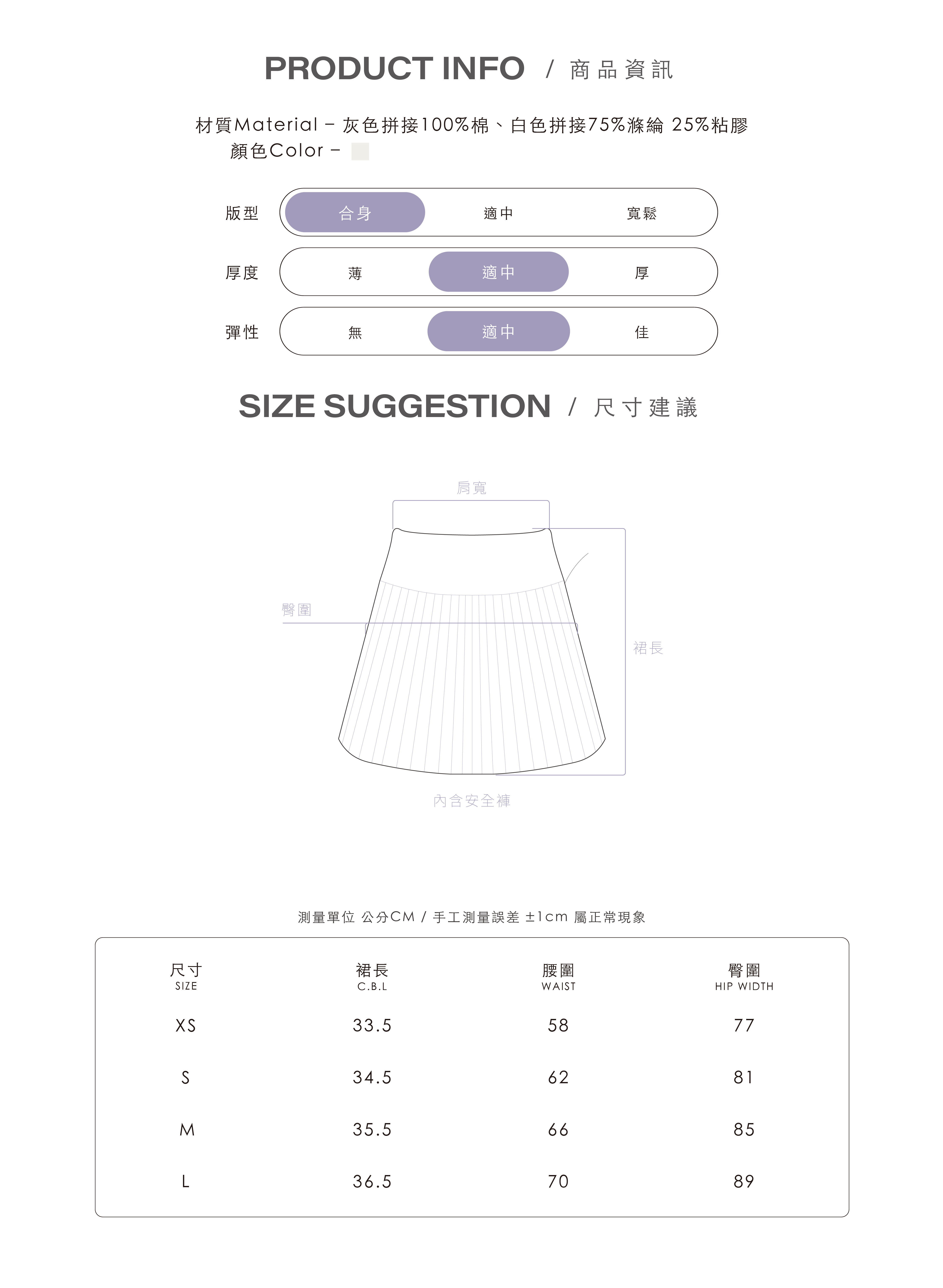 * 此面料可能因摩擦而轉移顏色 / 避免和淺色衣物接觸